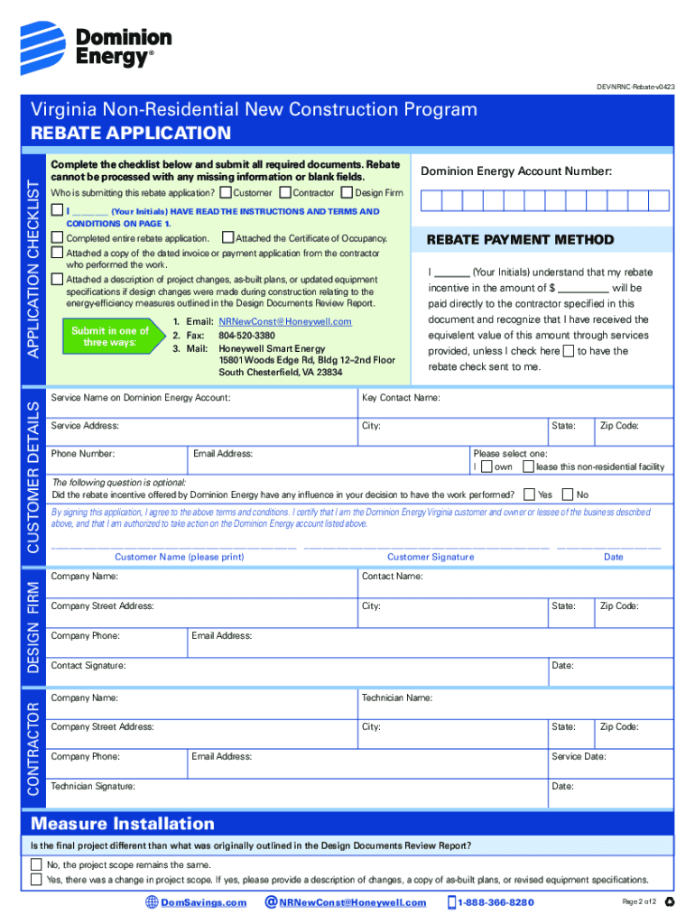 Nonresidential New Construction ProgramRebate Application Packet for Virginia