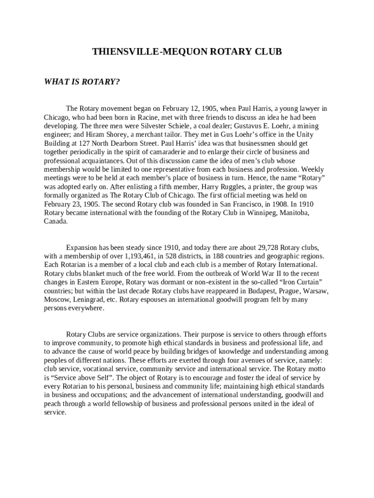 The HISTORY OF PAUL HARRIS AND ROTARY is a Word document needed to be submitted to the relevant address to provide some info. It has to be filled-out and signed, which may be done manually in hard copy, or using a certain software e. g. PDFfiller. It helps to complete any PDF or Word document directly from your browser (no software requred), customize it according to your requirements and put a legally-binding electronic signature. Once after completion, you can send the HISTORY OF PAUL HARRIS AND ROTARY to the appropriate receiver, or multiple individuals via email or fax. The blank is printable too because of PDFfiller feature and options offered for printing out adjustment. Both in electronic and physical appearance, your form should have a clean and professional outlook. You can also turn it into a template to use later, without creating a new blank form again. All you need to do is to customize the ready document.