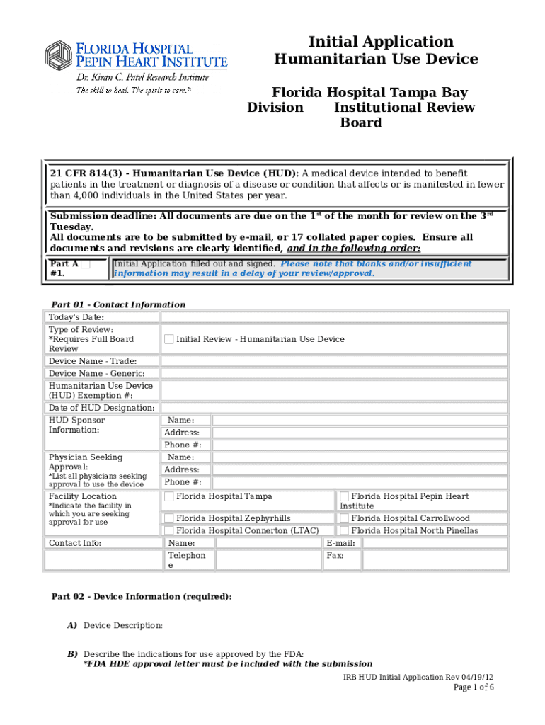 Humanitarian Use Device (HUD) Designation Program template instructions