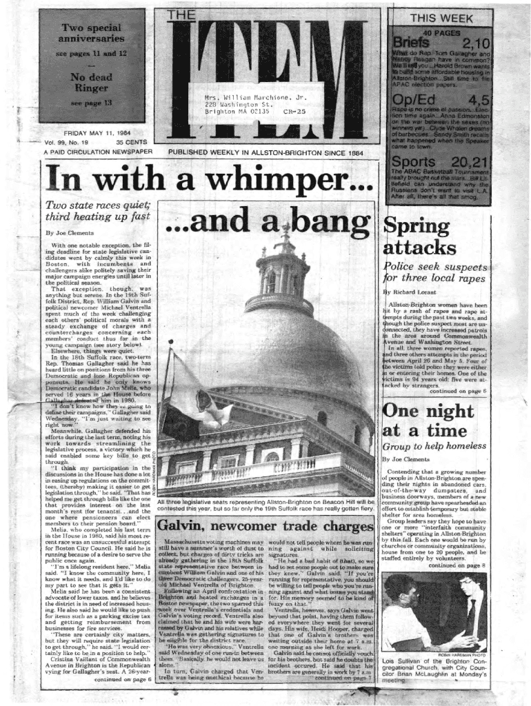 Mrs. William Marchi one. Jr. 228 Washin gt on St . Brighton MA 02135CR 25FRIDAY MAY 11, 1984 Vol. 99, No. 1935 CENTSA PAID CIRCULATION NEWSPAPERTwo state races quiet;; third heating up fastpnngBy