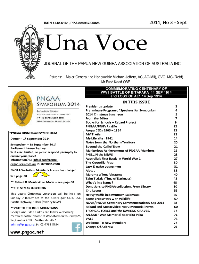 2014, No 3 SeptISSN 14426161, PPA 224987/00025Una Voce JOURNAL OF THE PAPUA NEW GUINEA ASSOCIATION OF AUSTRALIA INC Patrons: Major General the Honourable Michael Jeffery, AC, AO(Mil), CVO, MC (Retd)