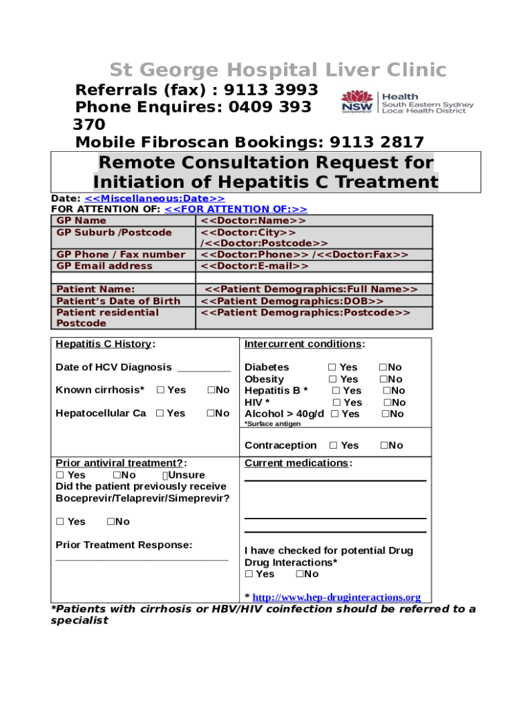 Instructions for the Liver Transplant Services at St. George Hospital form