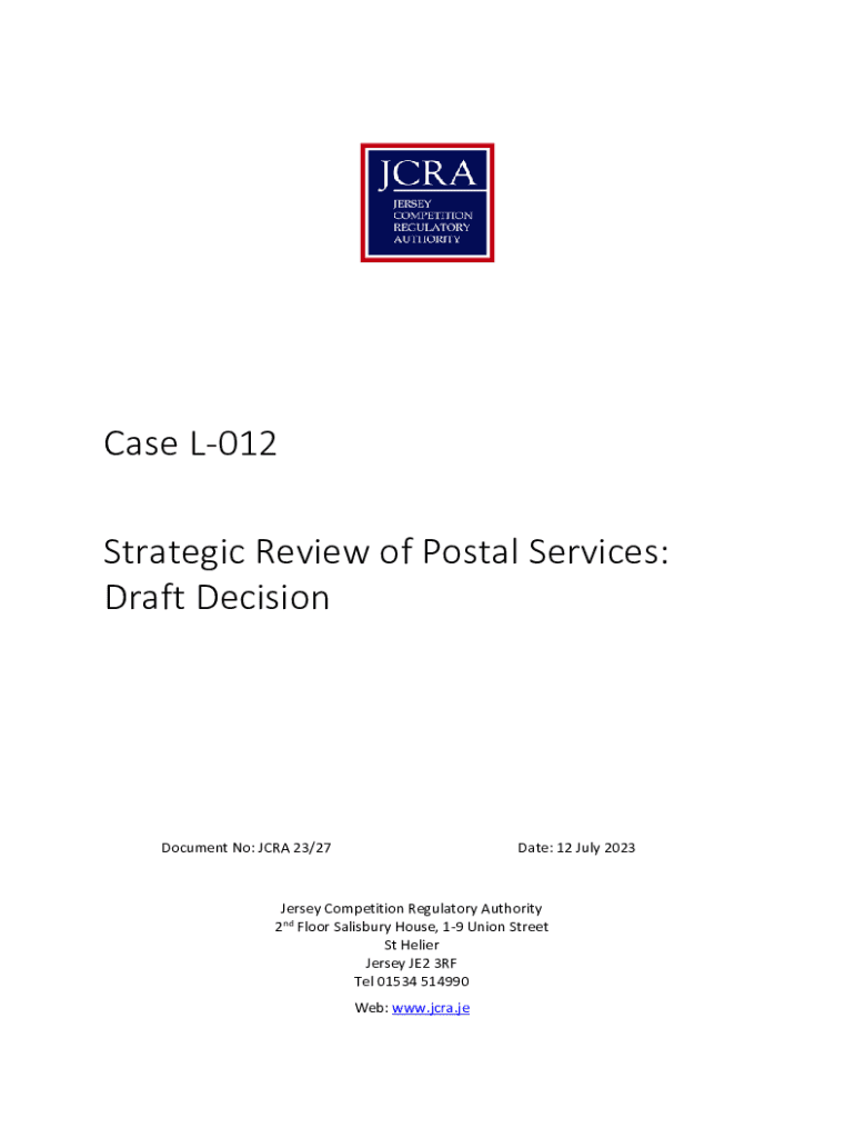 Draft DecisionDocument No: JCR 23/27Date: 12 July 2023Jersey Competition Regulatory Authority