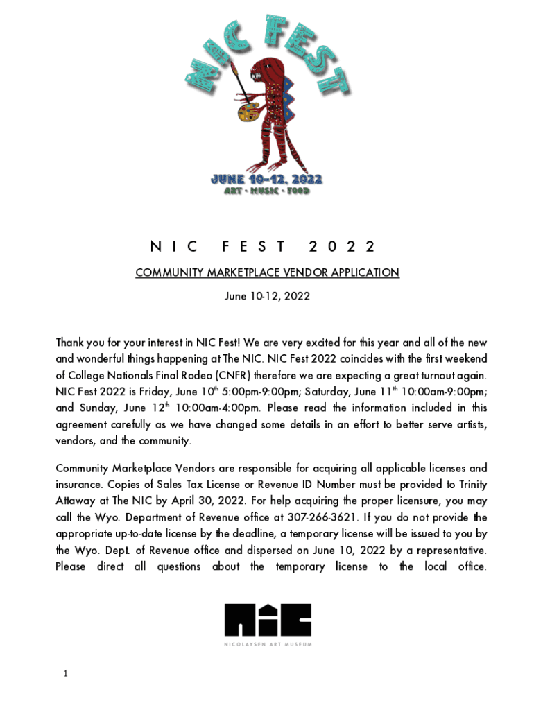 N I CF E S T2 0 2 2COMMUNITY MARKETPLACE VENDOR APPLICATION