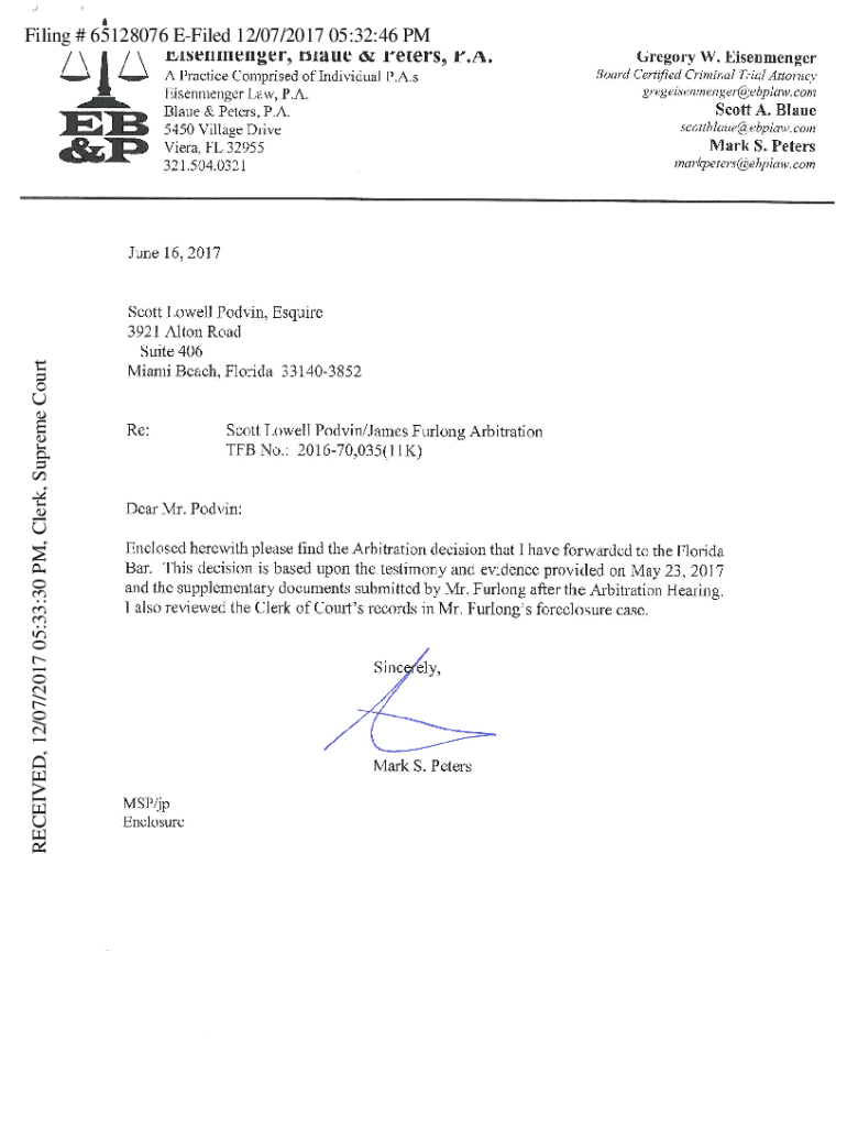 IN RE:Scott Lowell Odin/James Furlongs Arbitration TFB File No. 201670,035(11K)