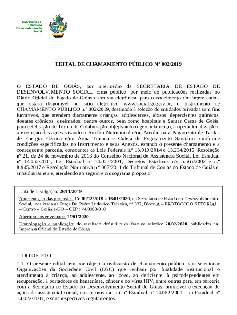 Frequently asked questions about the form Edital de Chamamento Pblico n 02 SEDS/CONDECA/ ...