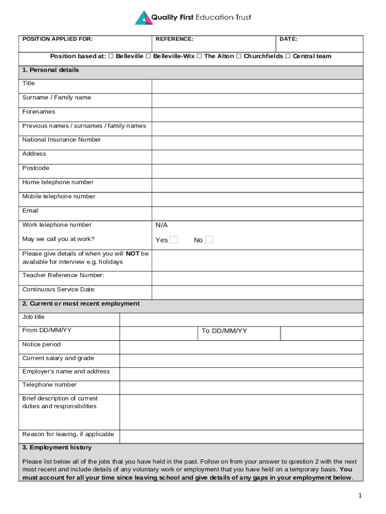 What is Q1E : Quality First Education Trust - Belleville Wix Academy Form?
