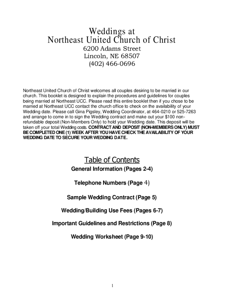 Weddings at Northeast United Church of Christ 6200 Adams Street Lincoln, NE 68507 (402) 4660696Northeast United Church of Christ welcomes all couples desiring to be married in our church. This booklet