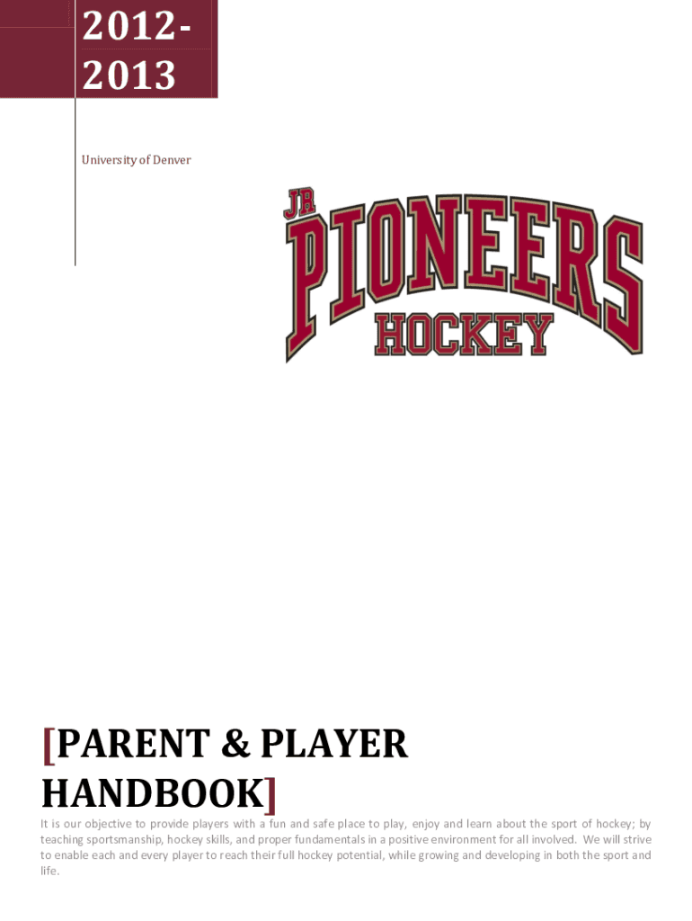 20122013 University of Denver[PARENT & PLAYER HANDBOOK] It is our objective to provide players with a fun and safe place to play, enjoy and learn about the sport of hockey; by teaching sportsmanship,