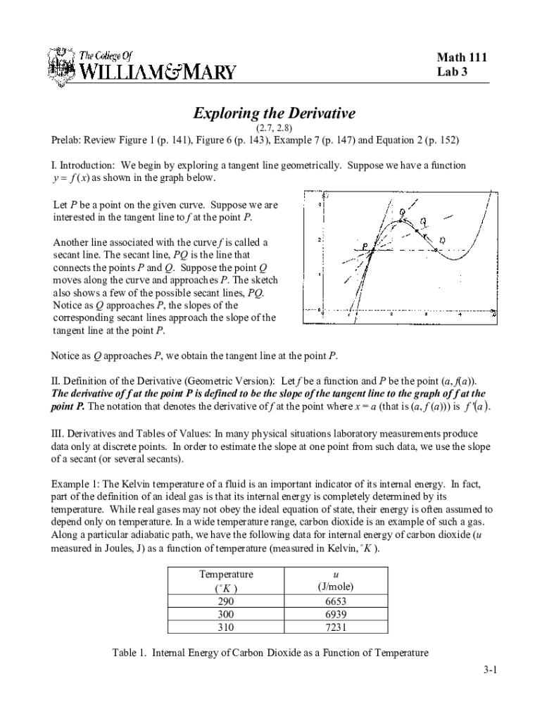 111f23-lab-3-exploring-form-derivativepdf - math 111 refers to a specific lab assignment or PDF document related to exploring the concept of derivatives in a mathematics course, likely designed for students to practice and understand derivative computations.