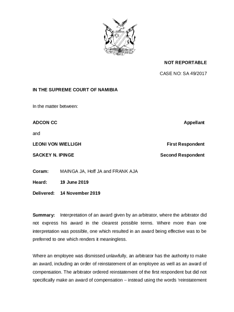 Frequently asked questions about the form Adcon CC v Von Wielligh