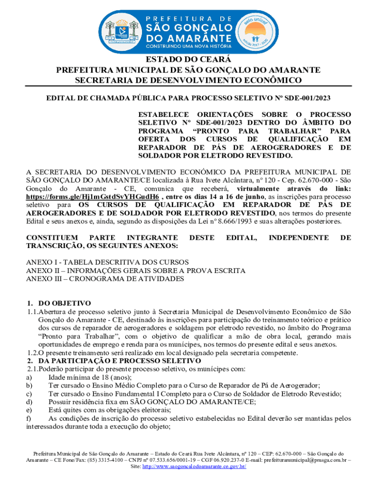 EDIT AL DE CHAM ADA PBL ICA PARA PROCESS SELECTIVE N SDE001/2023
