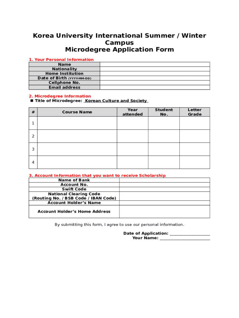 How should you fill out the Korea University International Summer / Winter Campus ... template