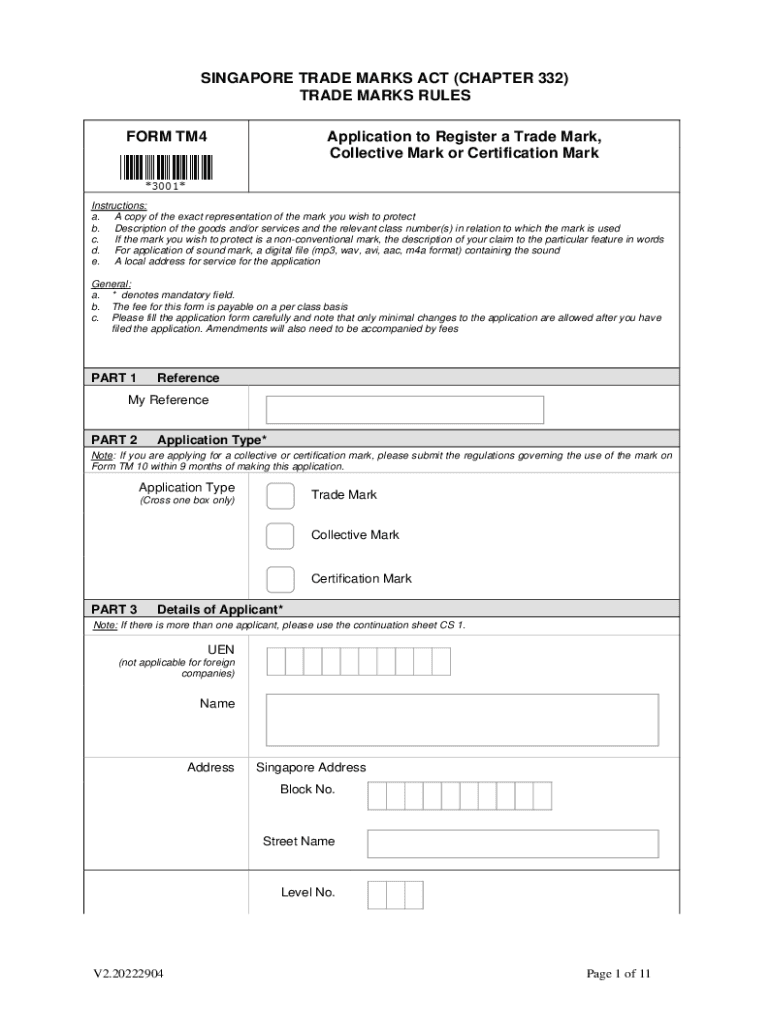 SINGAPORE TRADE MARKS ACT (CHAPTER 332) TRADE MARKS RULES FORM TM4Application to Register a Trade Mark, Collective Mark or Certification MarkInstructions: a. A copy of the exact representation of
