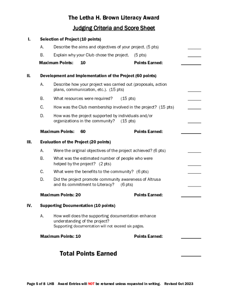 Get the free Get the free Letha H. Brown Literacy Award - Altrusa Org