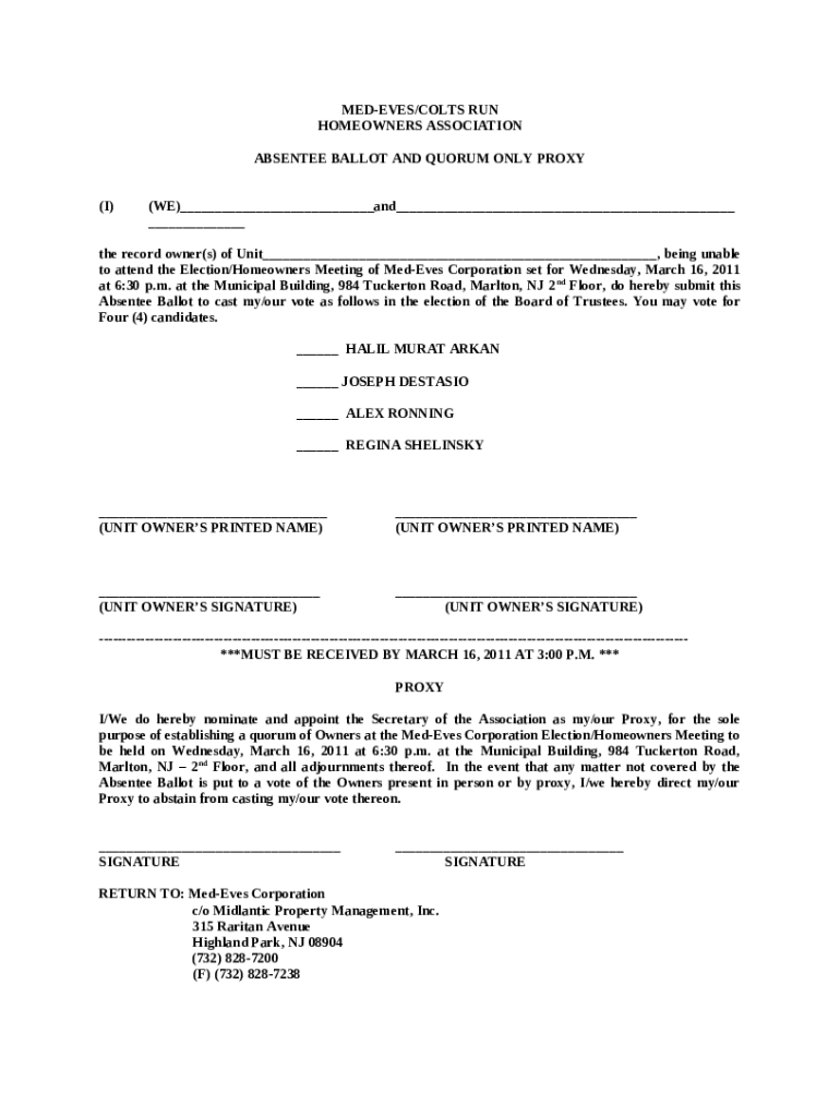 Instructions for the form HOA VOTING: The Differences Between a Ballot and a Proxy