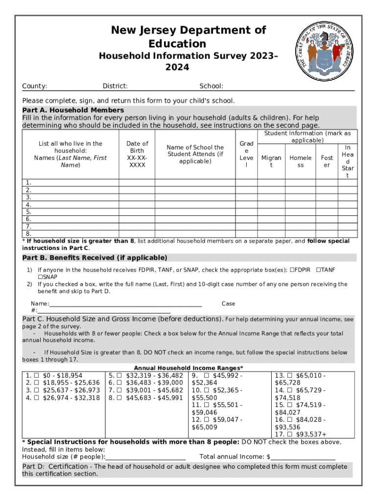 Instructions for the NJ Household Ination SurveyCommunity Schools form