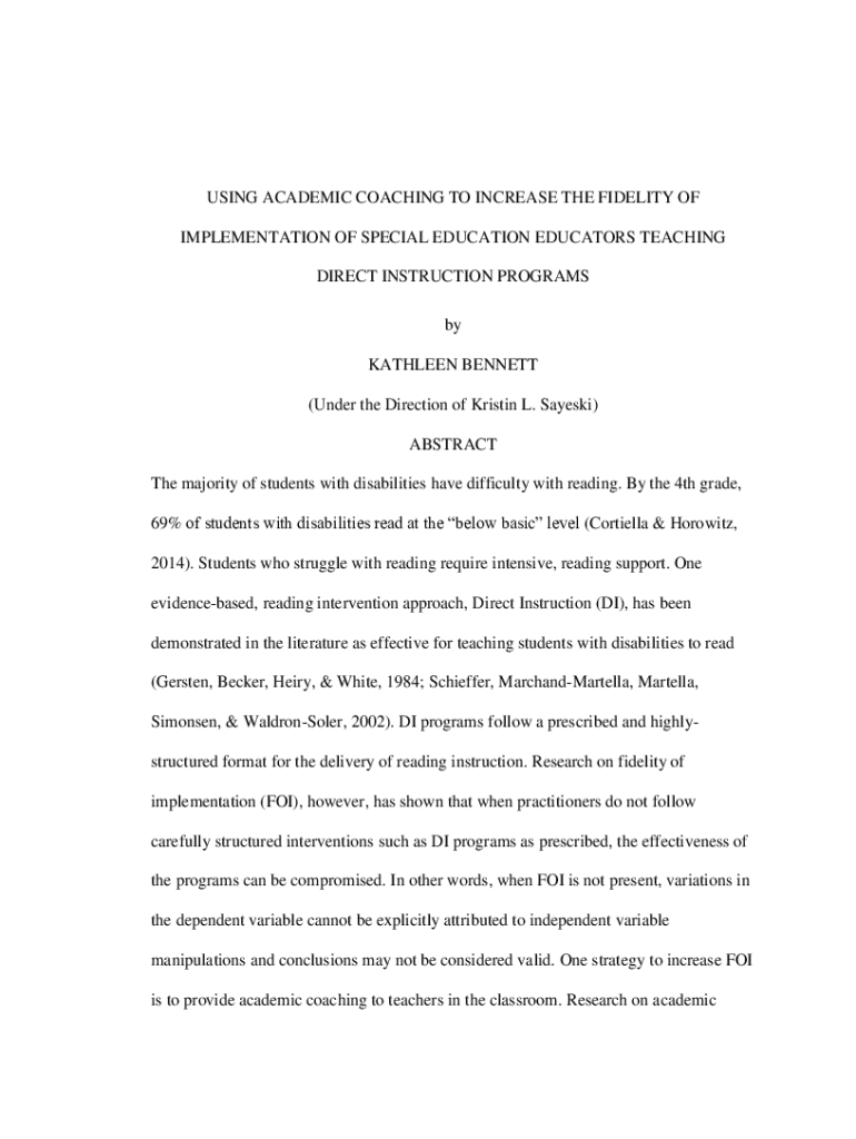 USING ACADEMIC COACHING TO INCREASE THE FIDELITY OF
