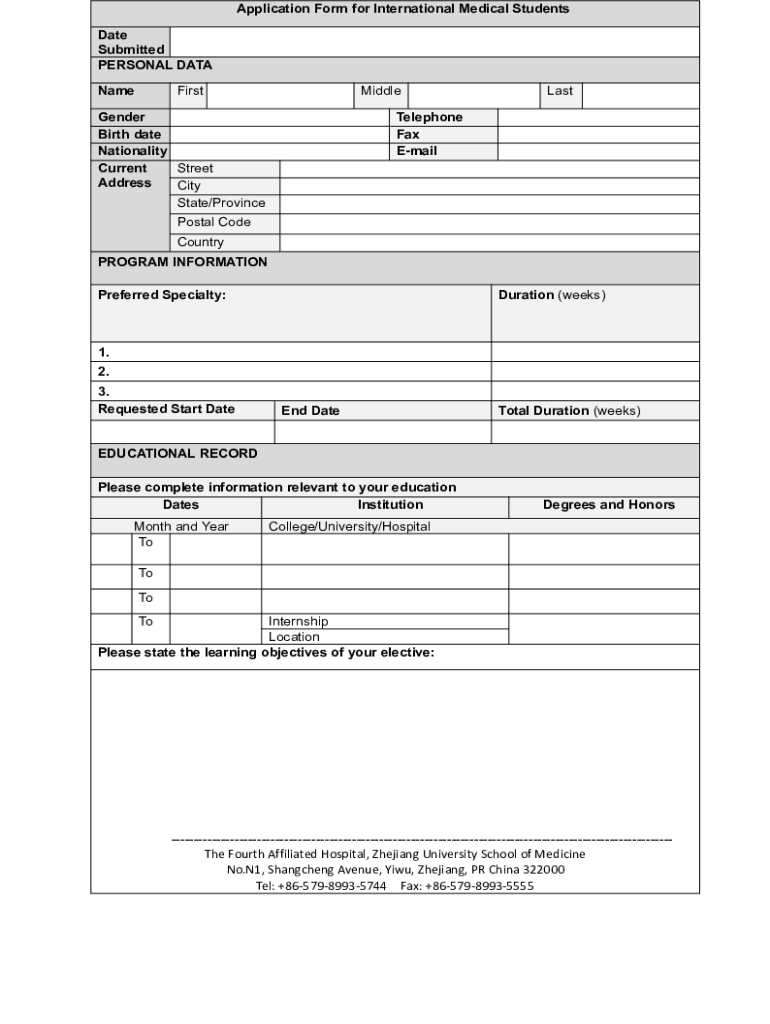Get the free Application Form for International Medical Students