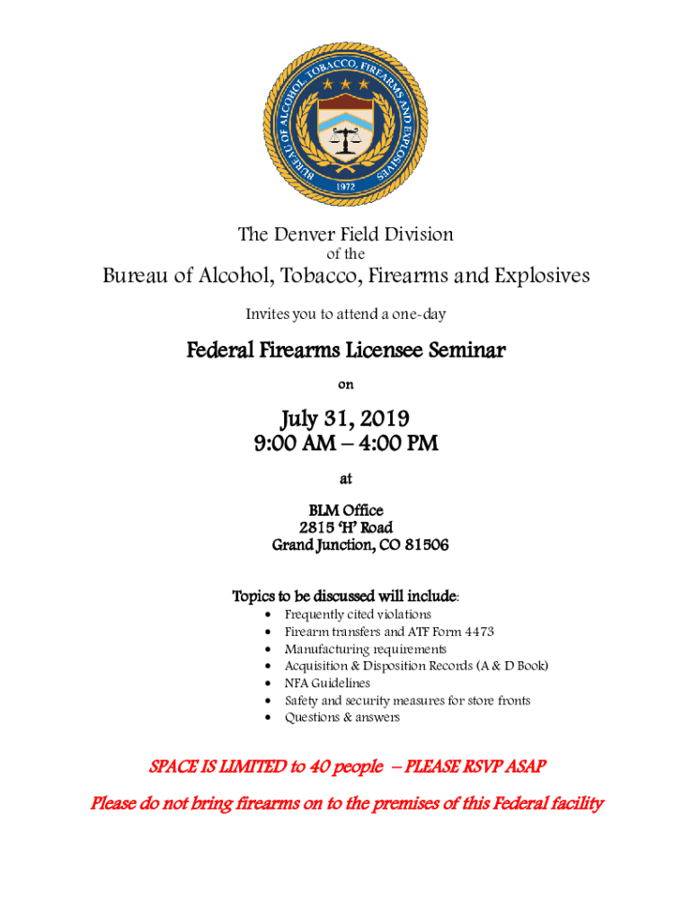 Invites you to attend a onedayFederal Firearms Licensee Seminar
