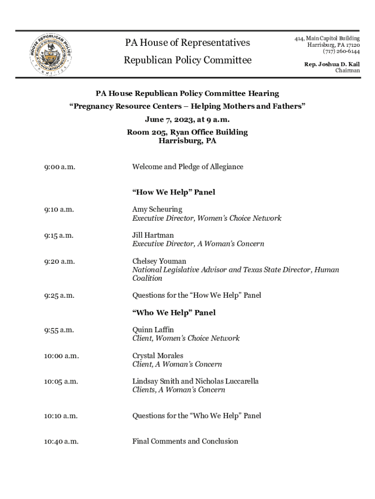 PA House of Representatives Republican Policy Committee414, Main Capitol Building Harrisburg, PA 17120 (717) 2606144 Rep. Joshua D. Kail ChairmanPA House Republican Policy Committee Hearing Pregnancy