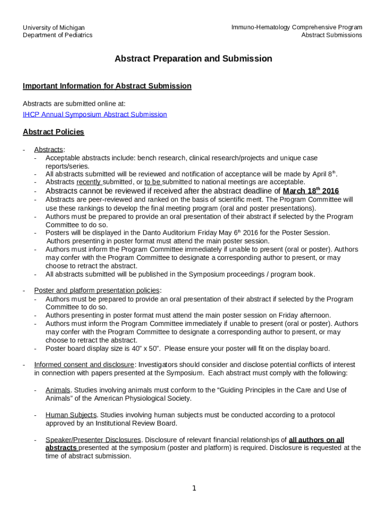 Instructions for the AMA Research Challenge: How to prepare an abstract - medicine umich form