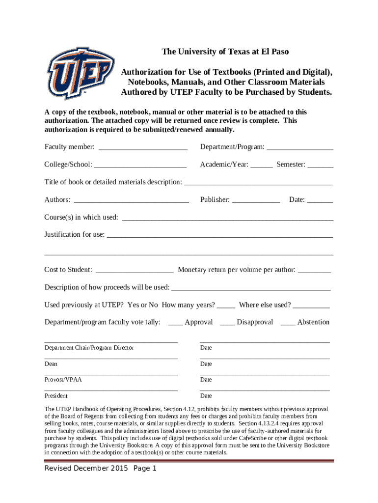 What is Authorization to use Textbooks Written by a Member of the ... Form?