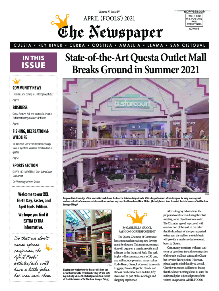 Volume V, Issue APRIL (FOOLS\') 2021The Newspaper*********ECRWSSEDDM****