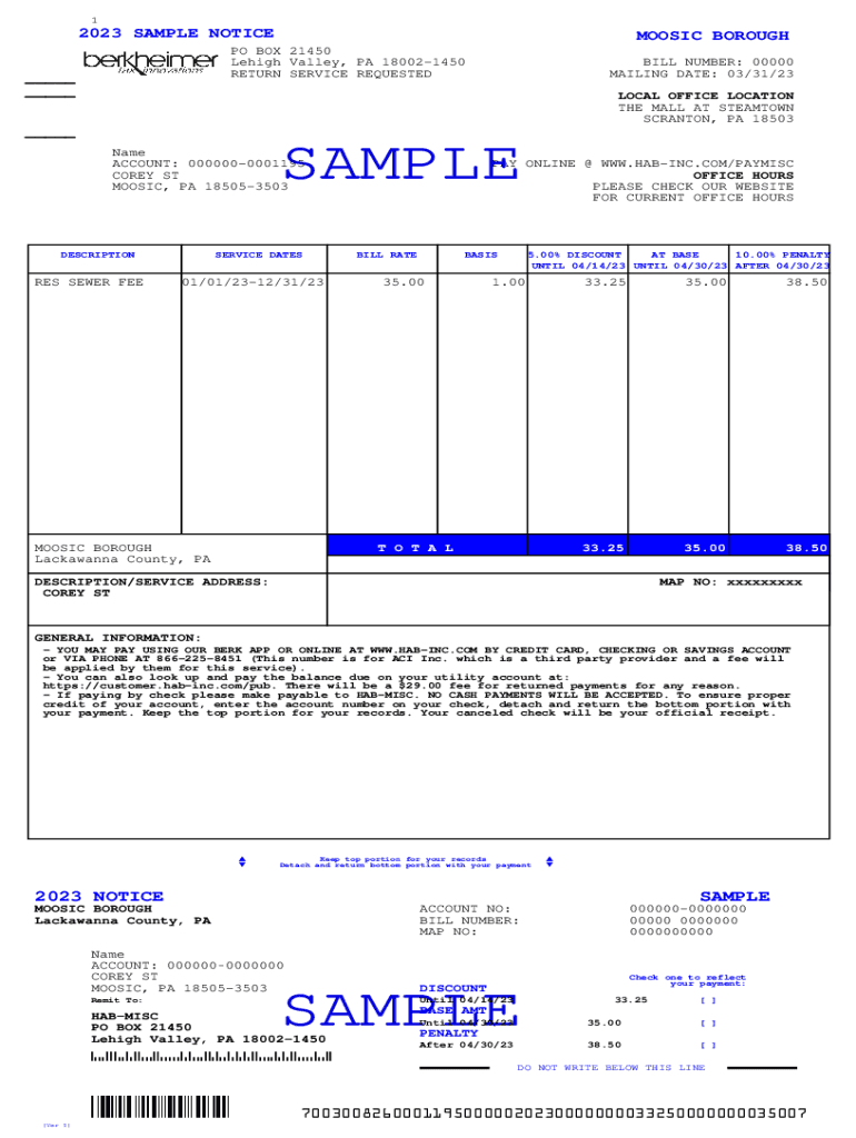 12023 SAMPLE NOTICEMOOSIC BOROUGH PO BOX 21450
