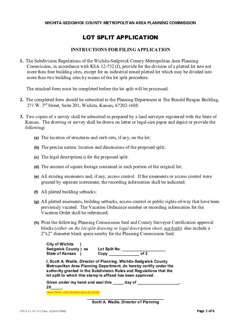 WICHITASEDGWICK COUNTY METROPOLITAN AREA PLANNING COMMISSIONLOT SPLIT APPLICATION INSTRUCTIONS FOR FILING APPLICATION 1. The Subdivision Regulations of the WichitaSedgwick County Metropolitan Area