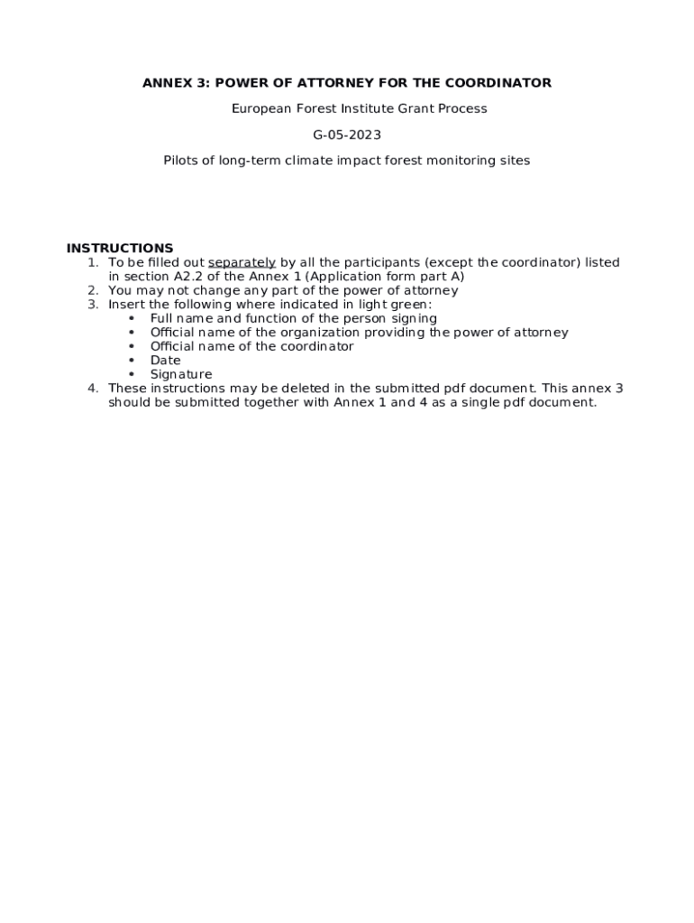Instructions for the Power of Attorney for Coordinator form