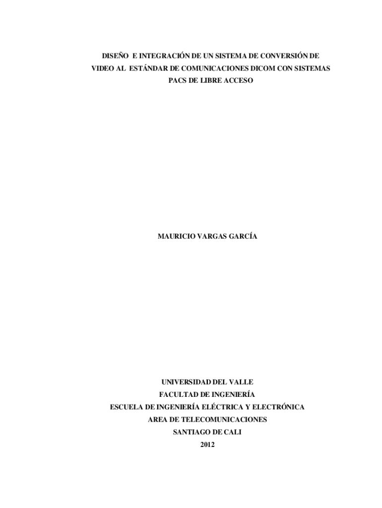 DISEO E INTEGRACIN DE UN SISTEMA DE CONVERSIN DE VIDEO AL ESTNDAR DE COMUNICACIONES DICOM CON SISTEMAS PACS DE LIBRE ACCESOMAURICIO VARGAS GARCAUNIVERSIDAD DEL VALLE FACULTAD DE INGENIERA ESCUELA