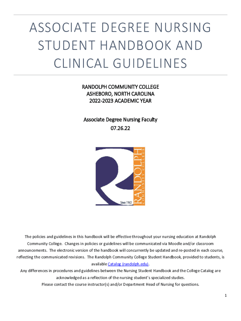 ASSOCIATE DEGREE NURSING STUDENT HANDBOOK AND CLINICAL GUIDELINES RANDOLPH COMMUNITY COLLEGE ASHEBORO, NORTH CAROLINA 20222023 ACADEMIC YEAR Associate Degree Nursing Faculty 07.26.22The policies and