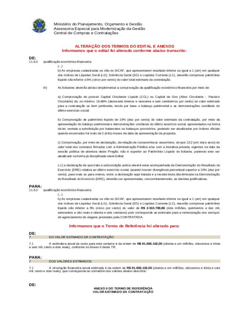Template SICAF - Sistema de Cadastramento Unificado de Fornecedores instructions