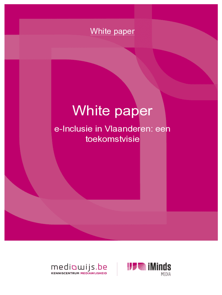 White paperWhite paper eInclusie in Vlaanderen: een toekomstvisieColofon White paper Deze organisaties/actoren werkten mee aan deze white paper: iMindsMediawijs.be, Vlaams Kenniscentrum MediawijsheidiMindsSMITVUBCultuurconnectDigipolisStad