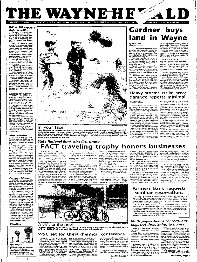WAYNE, NE &8787THURSDAY, JUNE &, 1991 l1s:TH YEAR NO. &8THIS ISSUE 1 SECTION, 12. PAGESAtaGlanceGardner buys