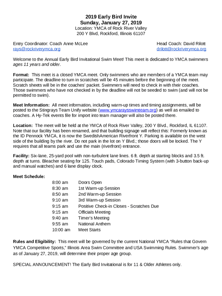 The YMCA of Rock River ValleyRockford IL is a Word document required to be submitted to the specific address in order to provide some info. It has to be filled-out and signed, which can be done manually, or via a certain software such as PDFfiller. This tool allows to complete any PDF or Word document right in the web, customize it according to your requirements and put a legally-binding electronic signature. Once after completion, you can send the YMCA of Rock River ValleyRockford IL to the appropriate individual, or multiple ones via email or fax. The template is printable as well from PDFfiller feature and options proposed for printing out adjustment. In both digital and in hard copy, your form will have got neat and professional look. It's also possible to save it as the template for further use, so you don't need to create a new file over and over. Just customize the ready form.