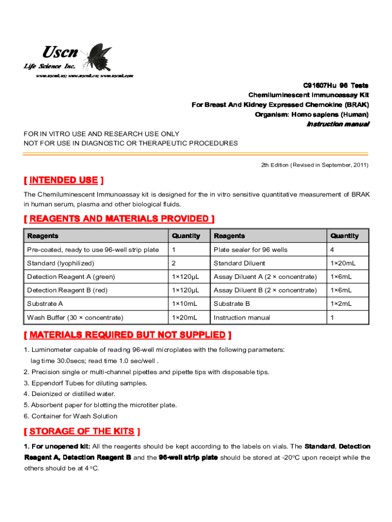 Get the free CLIA Kit for Breast And Kidney Expressed Chemokine (BRAK). Instruction manual (Catal...
