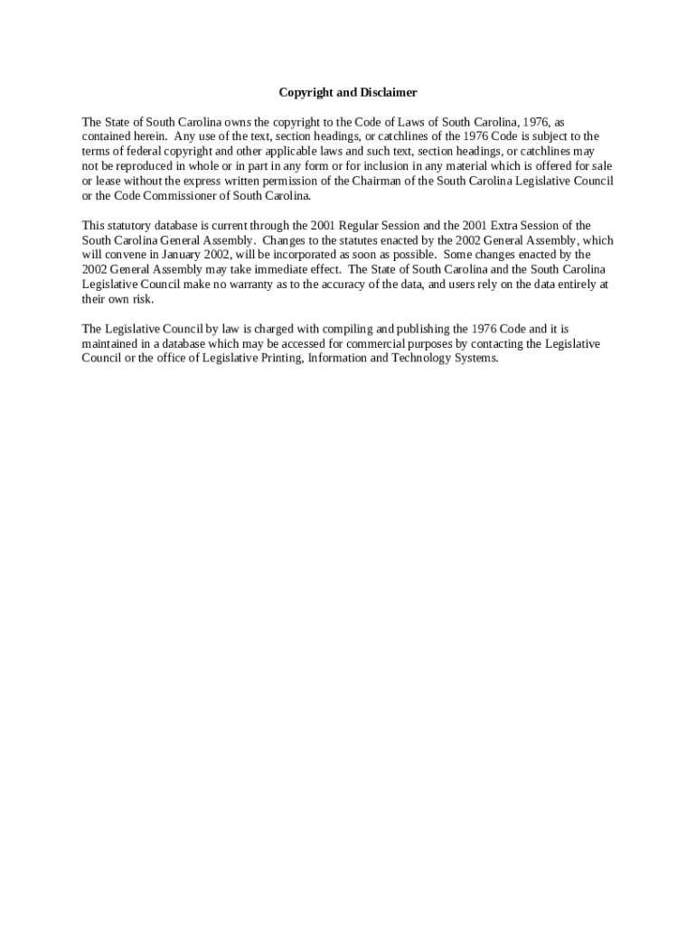Template S.C. Code of Laws Title 40 Chapter 57 Real Estate Brokers ... instructions