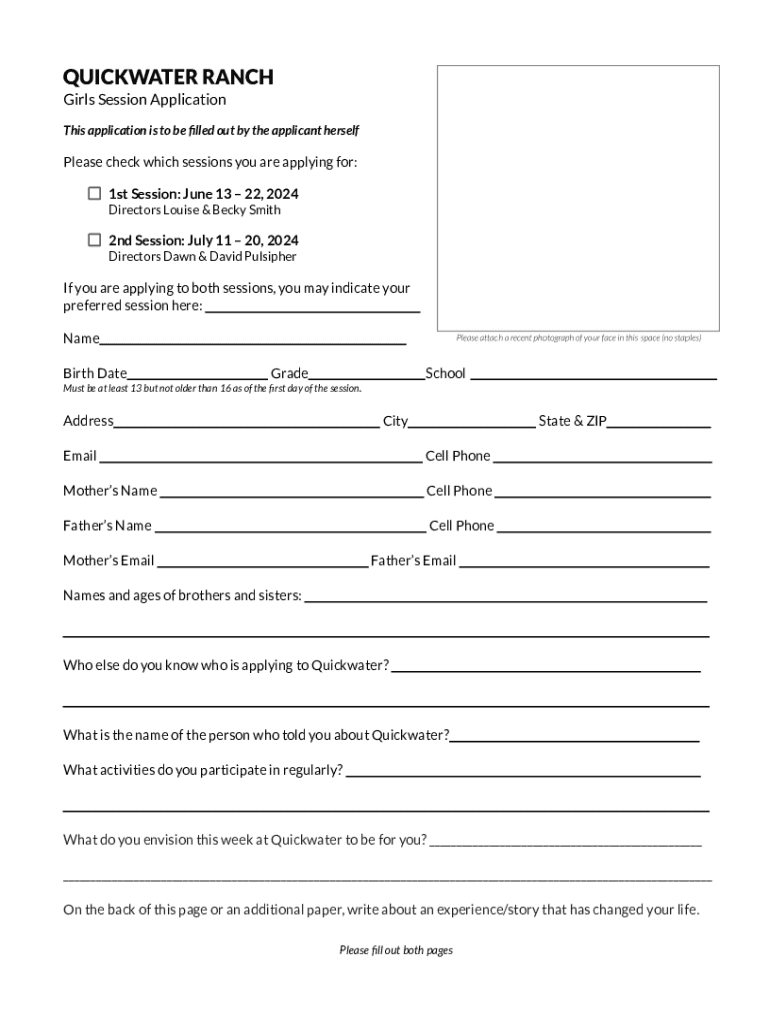 This application is to be filled out by the applicant herselfPlease check which sessions you are applying for: