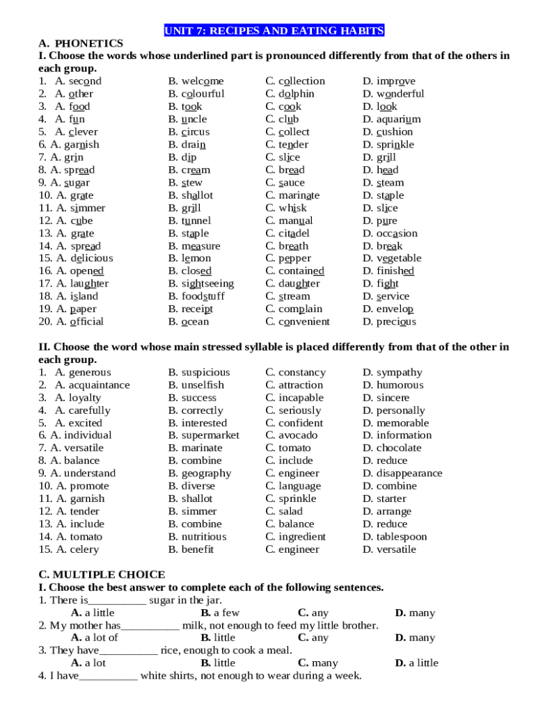 What is Bi tp Ting Anh lp 9 Unit 7 Recipes and Eating Habits ... Form?