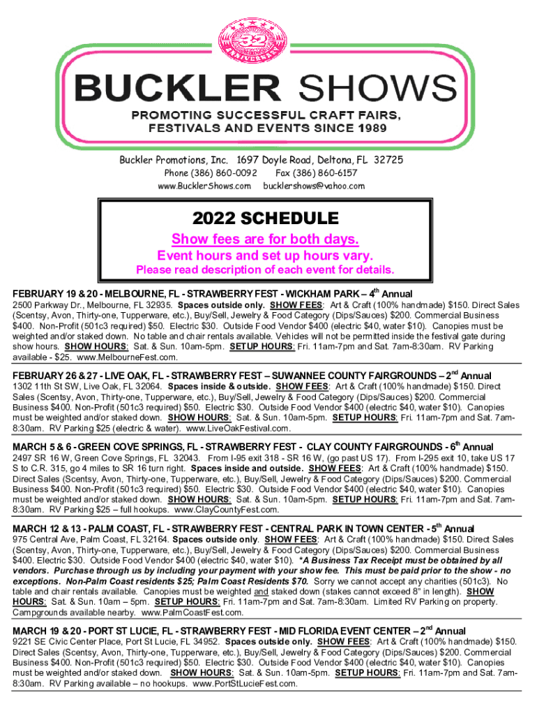 www.BucklerShows.com bucklershows@yahoo.com2022 SCHEDULE