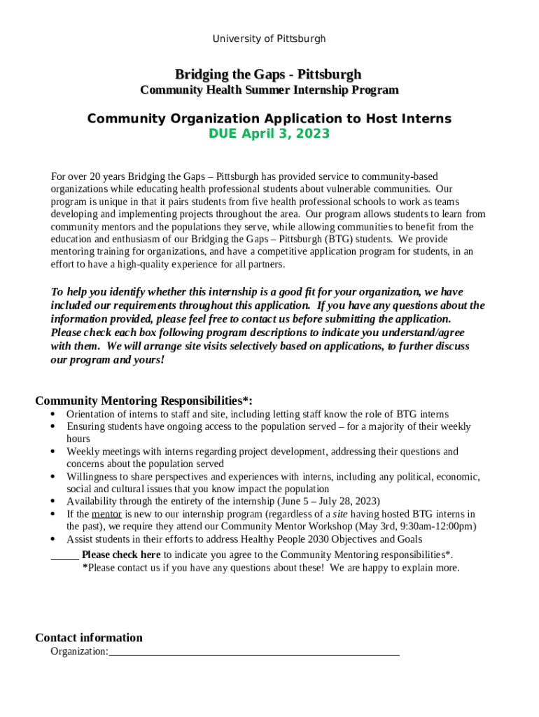 Instructions for the Bridging the Gaps Community Health Internship - 2002 form