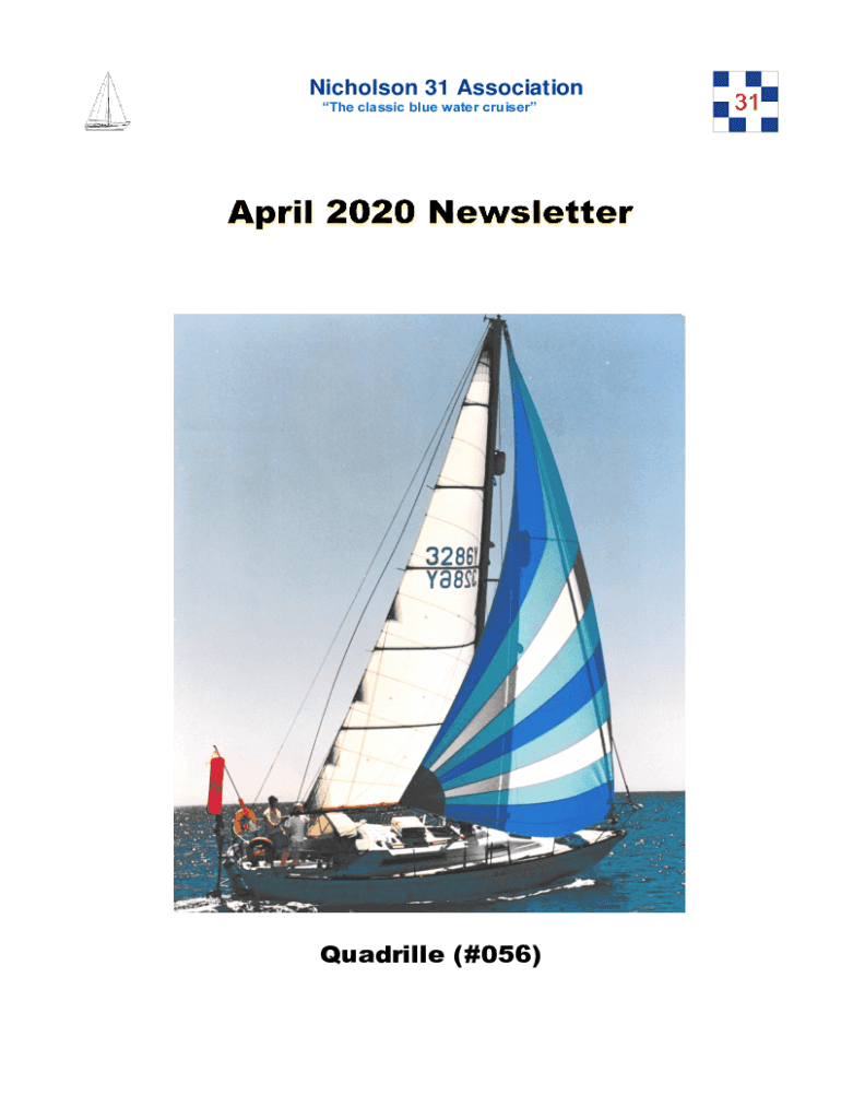 Nicholson 31 Association The classic blue water cruiserQuadrille (#056)Nicholson 31 AssociationApril 2020 NewsletterThe classic blue water cruiserContents A word from our President2Tribute to Allan