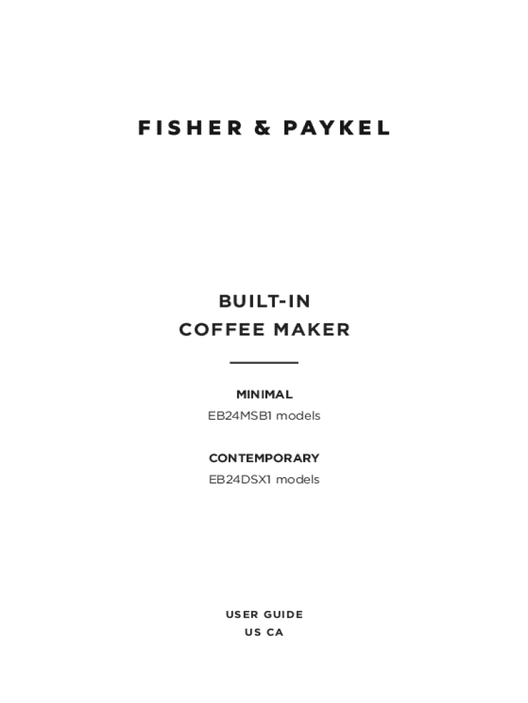 BUILTIN COFFEE MAKERMINIMAL EB24MSB1 models CONTEMPORARY EB24DSX1 modelsUSER GUIDE US CACONTENTS Safety and warnings4Before you begin7Control panel8Accessories 9 First use10Coffee making guide17Steaming