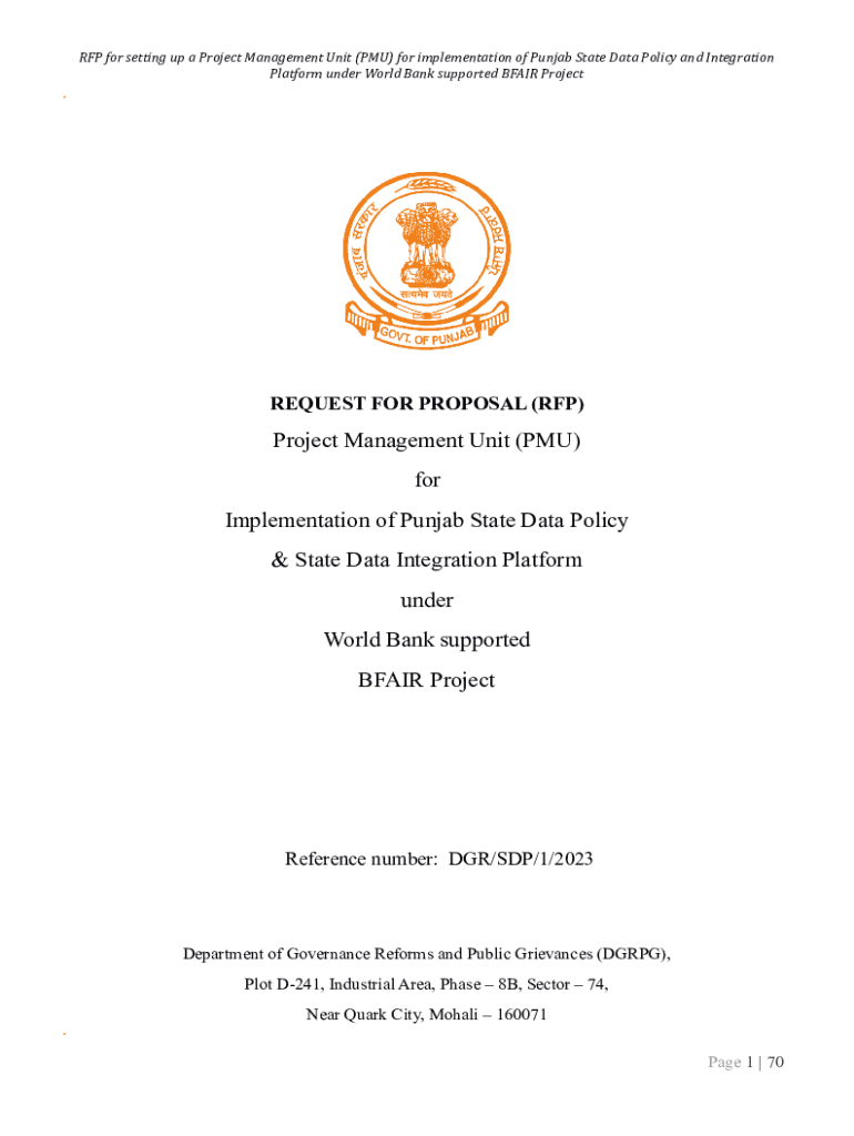 RFP for setting up a Project Management Unit (PMU) for implementation of Punjab State Data Policy and Integration