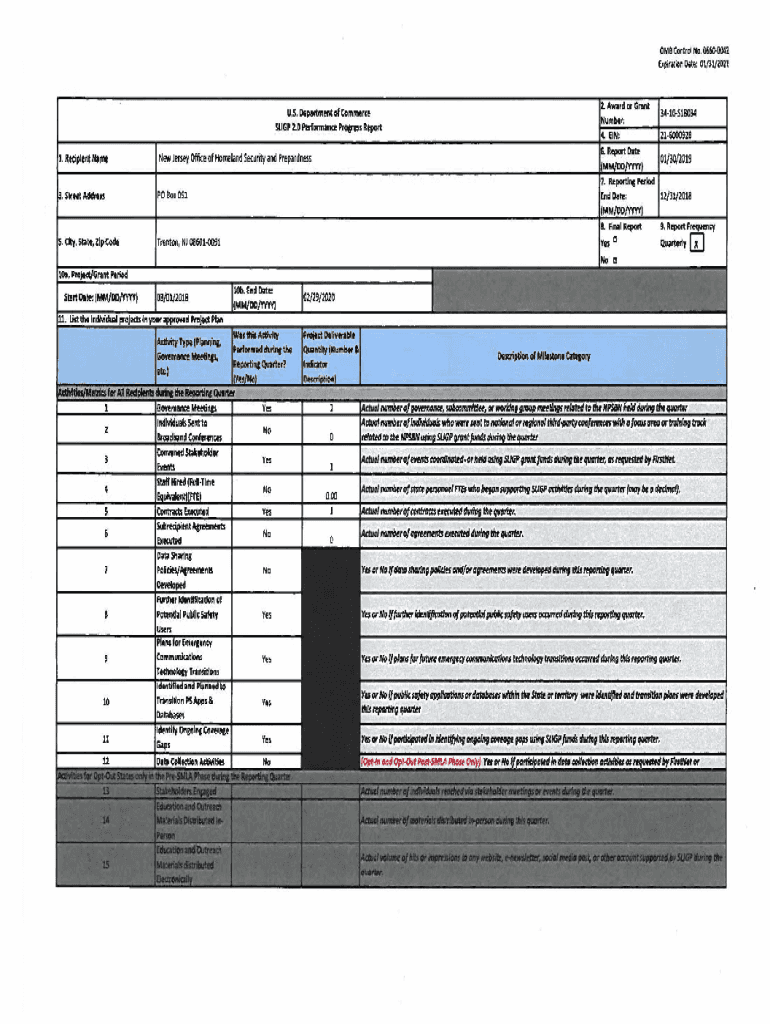 SLIP 2.0 Performance Prllff$S Report1. Recipient Name Jersey Office of Homeland Security and Prepardness01/30/2019
