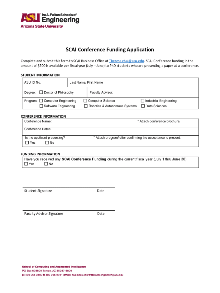 Complete and submit this form to SCAN Business Office at Theresa.chai@asu.edu. SCAN Conference funding in the