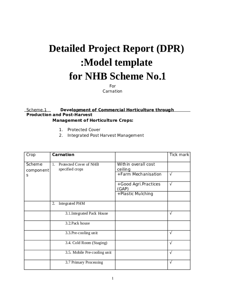 Detailed Project Report (DPR) - National Horticulture Board template instructions