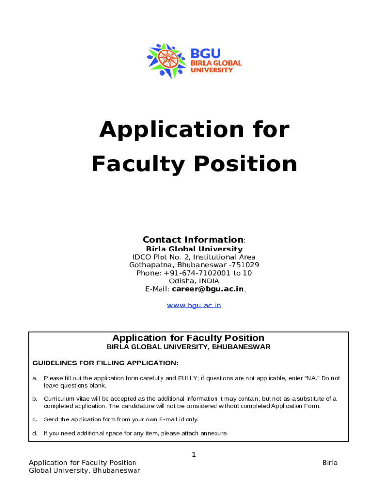 Instructions for the Birla Global University Applications are invited from eligible ... form